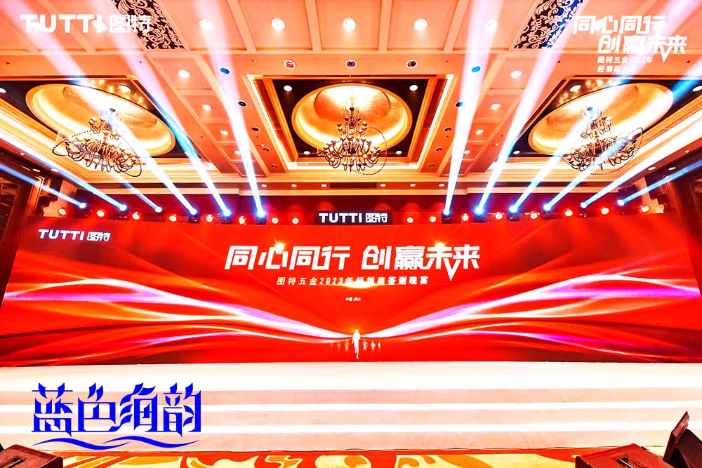 「藍色海韻」廣東省佛山市順德晚宴晚會活動策劃慶典禮儀公關廣告傳媒演出公司提供的晚宴晚會案例,2023年2月25日,“同心同行·創贏未來”圖特五金2023年經銷商答謝晚宴在順德喜來登酒店圓滿舉辦!眾領導嘉賓以及來自全國各地的經銷商家人們薈萃一堂,共話行業趨勢,共敘廠商情誼,共謀圖特發展。