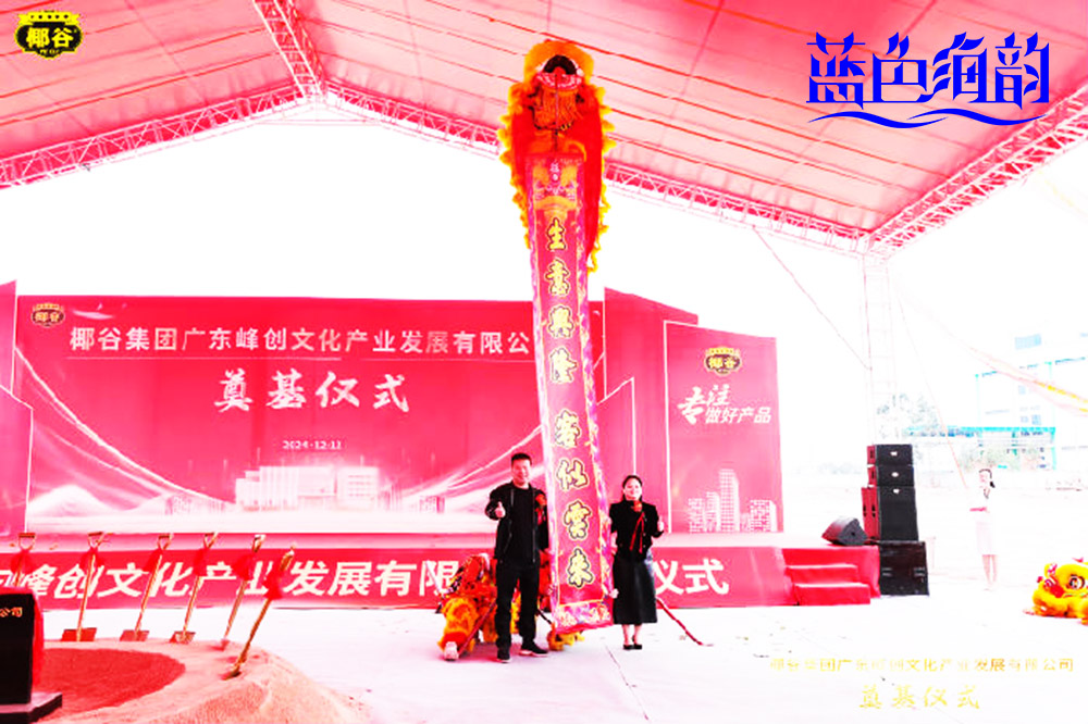 「藍色海韻」廣東省佛山市比較專業的動工開工奠基活動策劃禮儀慶典公司好策劃強執行4A服務演出公關廣告傳媒案例,2024年12月12日,椰谷集團廣東峰創文化產業發展有限公司奠基儀式在佛山三水區西南水都產業園順利舉行,禮炮齊鳴鑼鼓喧天,在一片磅礴歡騰的氣氛中。這一項目的奠基,不僅是椰谷集團的重要里程碑,更是佛山三水區打造食品飲料產業集群的有力推動。各界嘉賓云集,共同見證這一激動人心的時刻。三水區以及椰谷集團相關領導、客戶、合作伙伴、媒體朋友和其他嘉賓均出席本次奠基儀式。