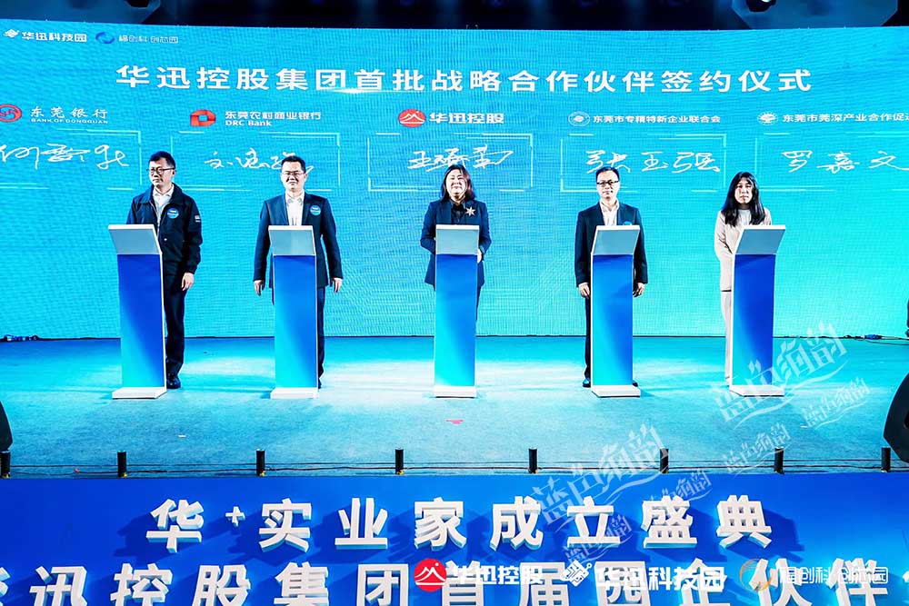 [藍色海韻]廣東省東莞市會議會務慶典禮儀演出公關廣告傳媒活動策劃公司發布的4A專業服務執行案例,2023年3月31日,華迅控股集團在華迅科技園高規格舉辦華+實業家成立盛典暨華迅控股集團首屆園企伙伴大會盛典在廣東東莞舉行,200多家政、商、協、企單位代表出席了本次活動,集聚一堂,共促科技制造高質量發展。活動現場,有頒獎儀式,多家機構達成戰略合作簽約儀式。