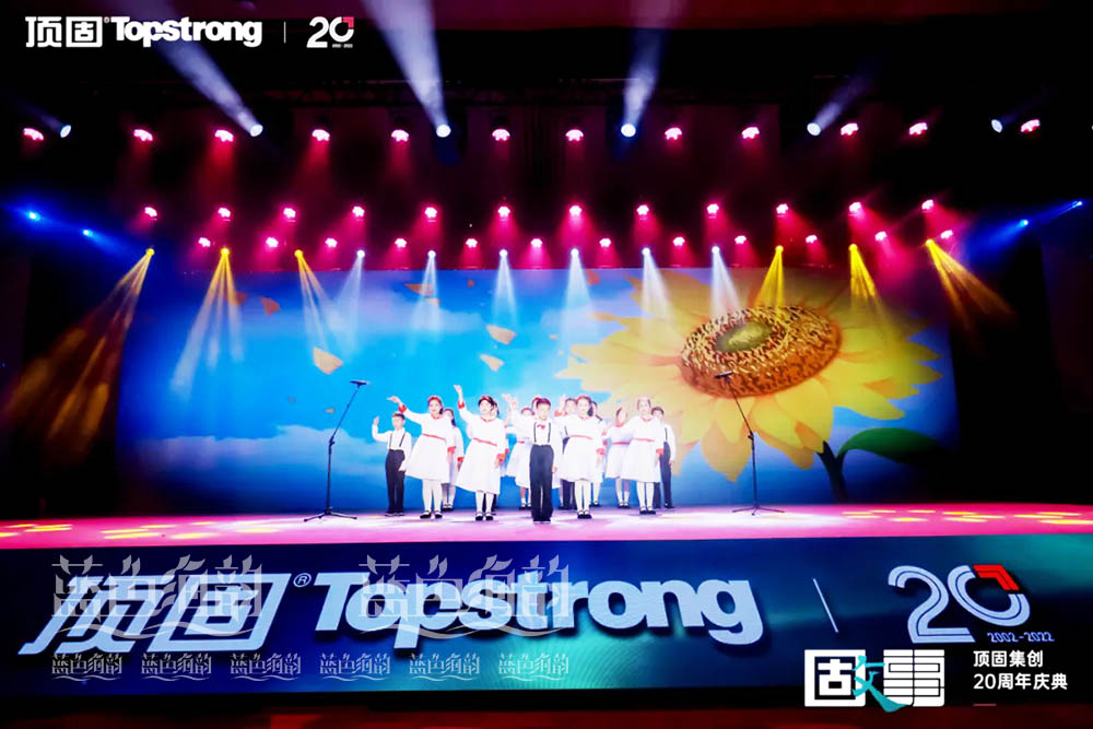在慶典現場,頂固再次發揮其創新變革的精神,以原創舞臺劇的形式,分別從揚帆起航、乘風破浪、勢如破竹、勇攀高峰、與愛同行五大篇章,讓觀眾在深度體驗中真切感受頂固發展的崢嶸歲月。